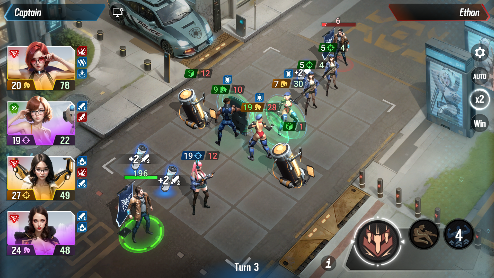Fight in exciting and colorful turn-based battles. The city is swarming with bandits who turn girls into slaves. Rescue the poor girls, and they will join your squad and show you their gratitude!